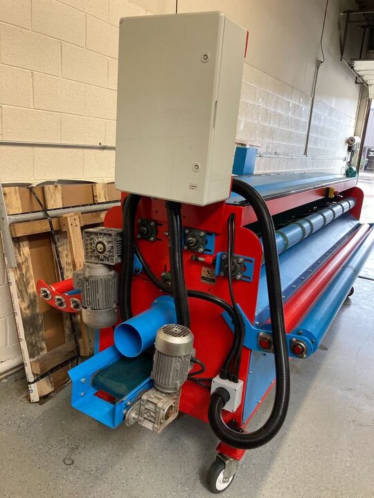 Full Automatic Rug Beating Dusting Machine with rubber conveyor.Easy to Operate. Speed adjusted conveyor.Easy to reach mechanical areas for maintenance.Wheeled for easy moving around your shop. 75ft. extension cord 3-Phase.Equipped with an on/off switch and emergency stop. Please give me a call if you have any questions 773-501-1542
