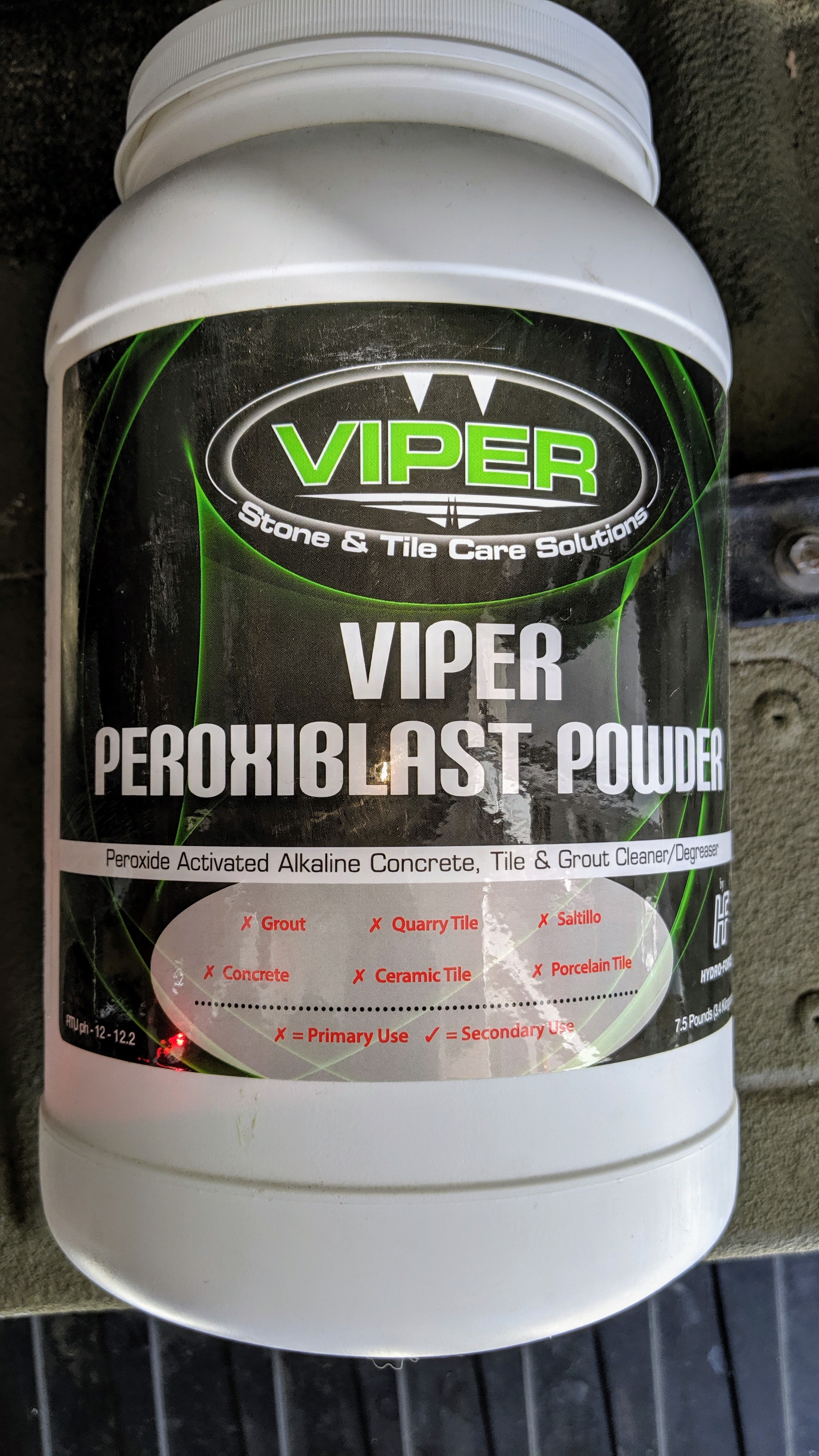 Viper Peroxiblast as Mike showed. Most powders with sodium percarbonate added use a small amount. We use at a level so that it is equal to adding 1 ounce of Boost All to a ready to use gallon. We also have Viper Venom Powder and I have heard of a lot of customers using Flex Powder on tile and grout.