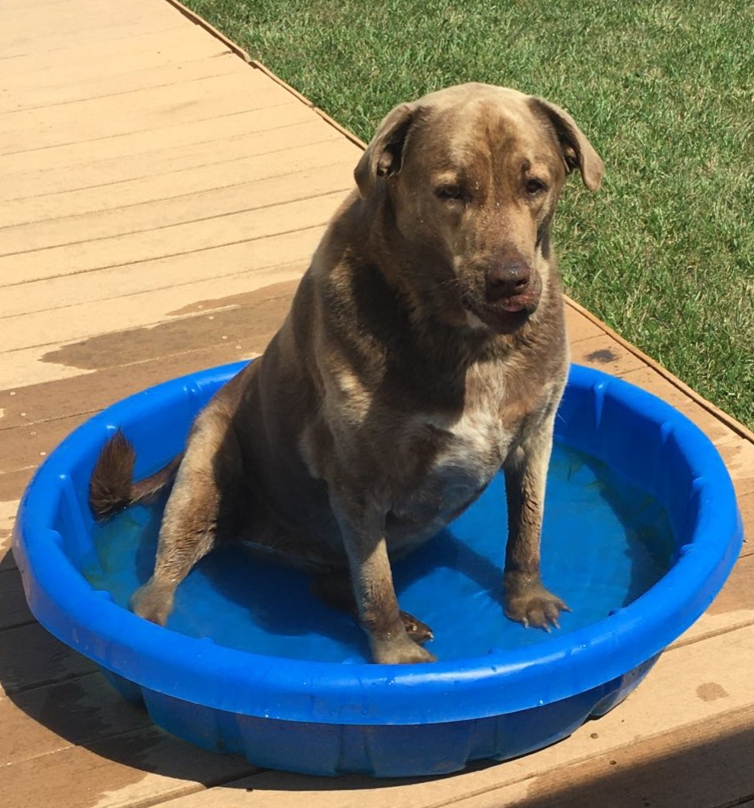 How much do you charge for labs? To say he smells like yesterday's ass is doing him a kindness. Creek water and 90 degrees makes for a stinky Bax. 🙂