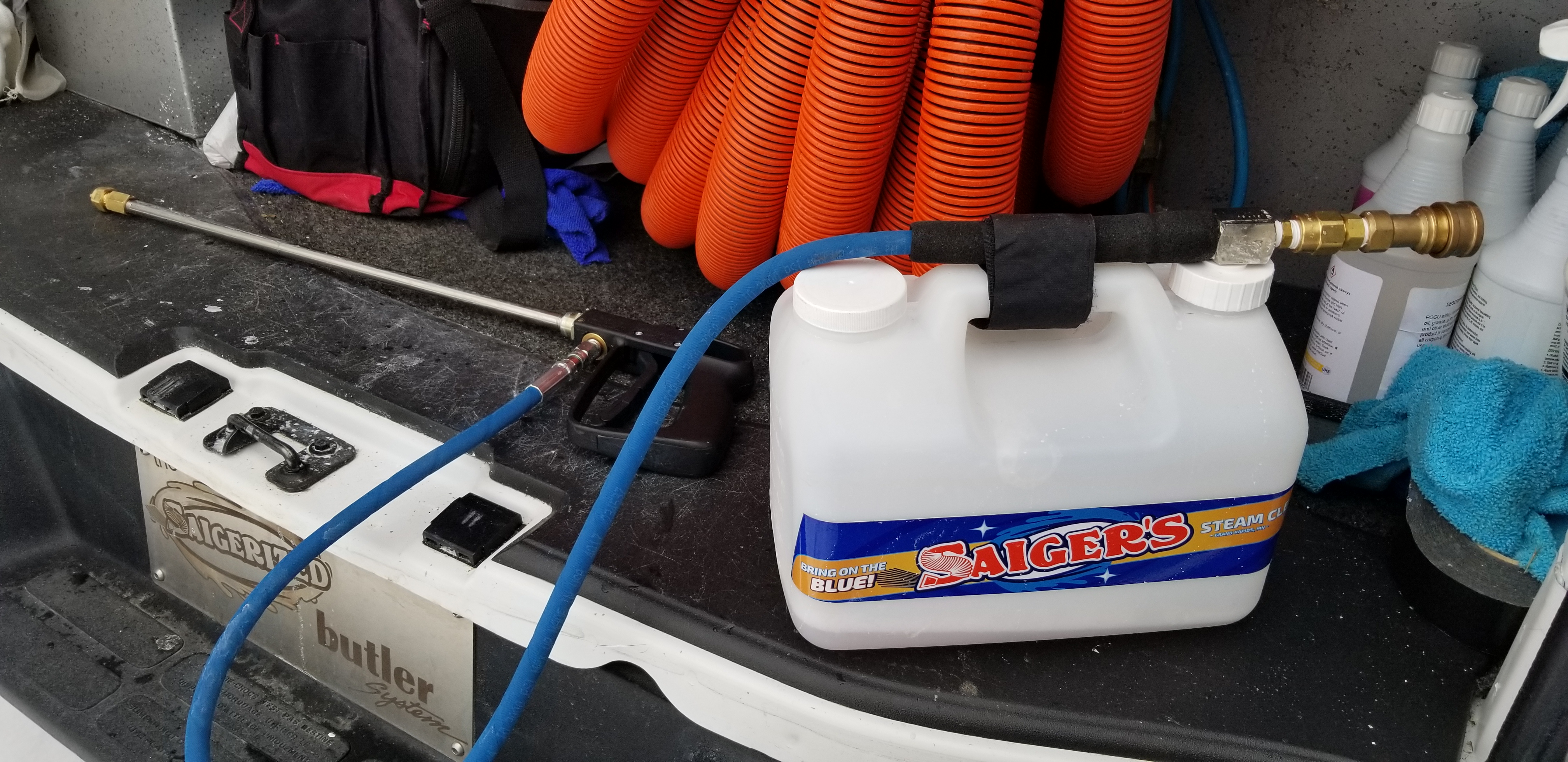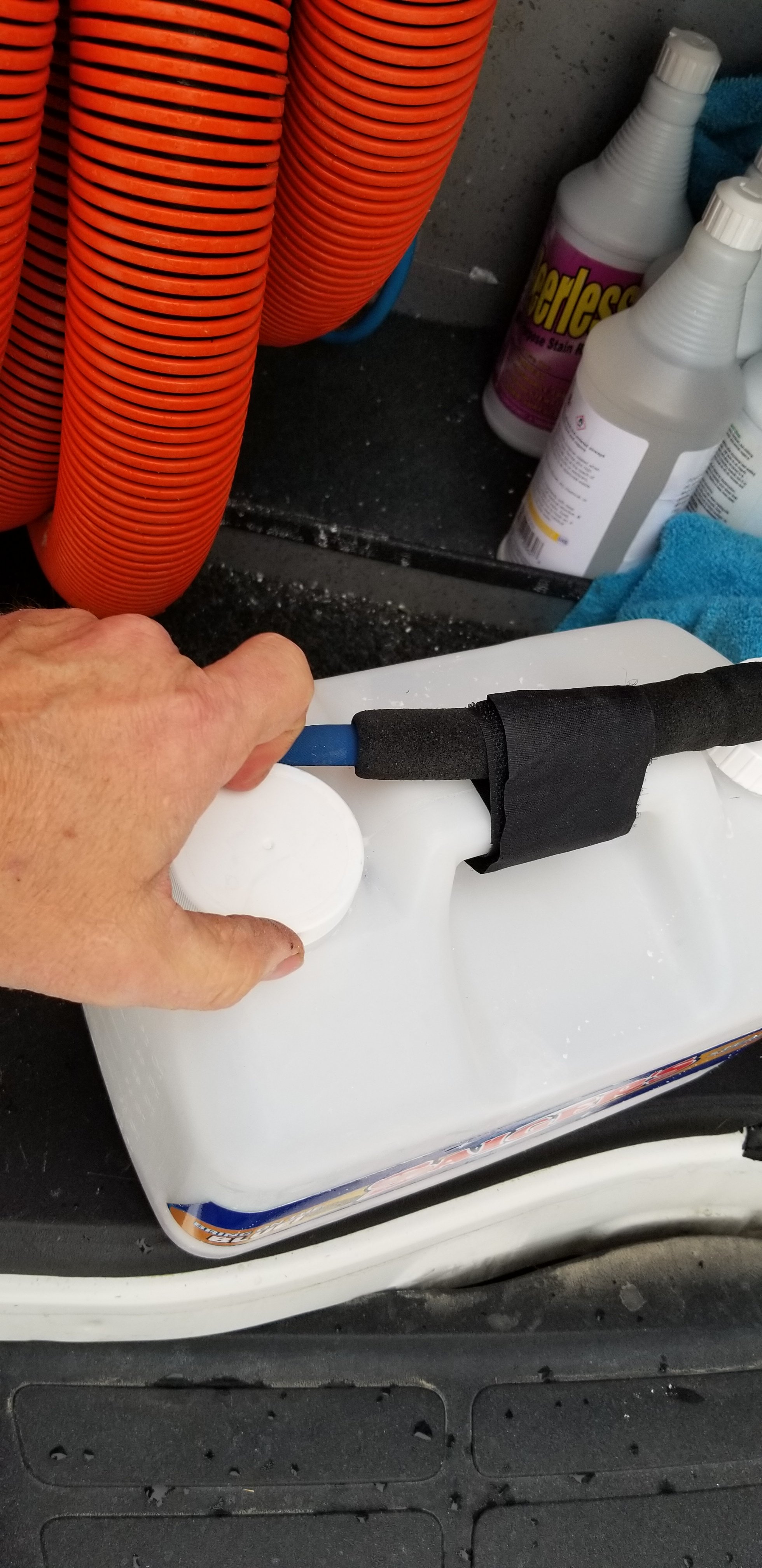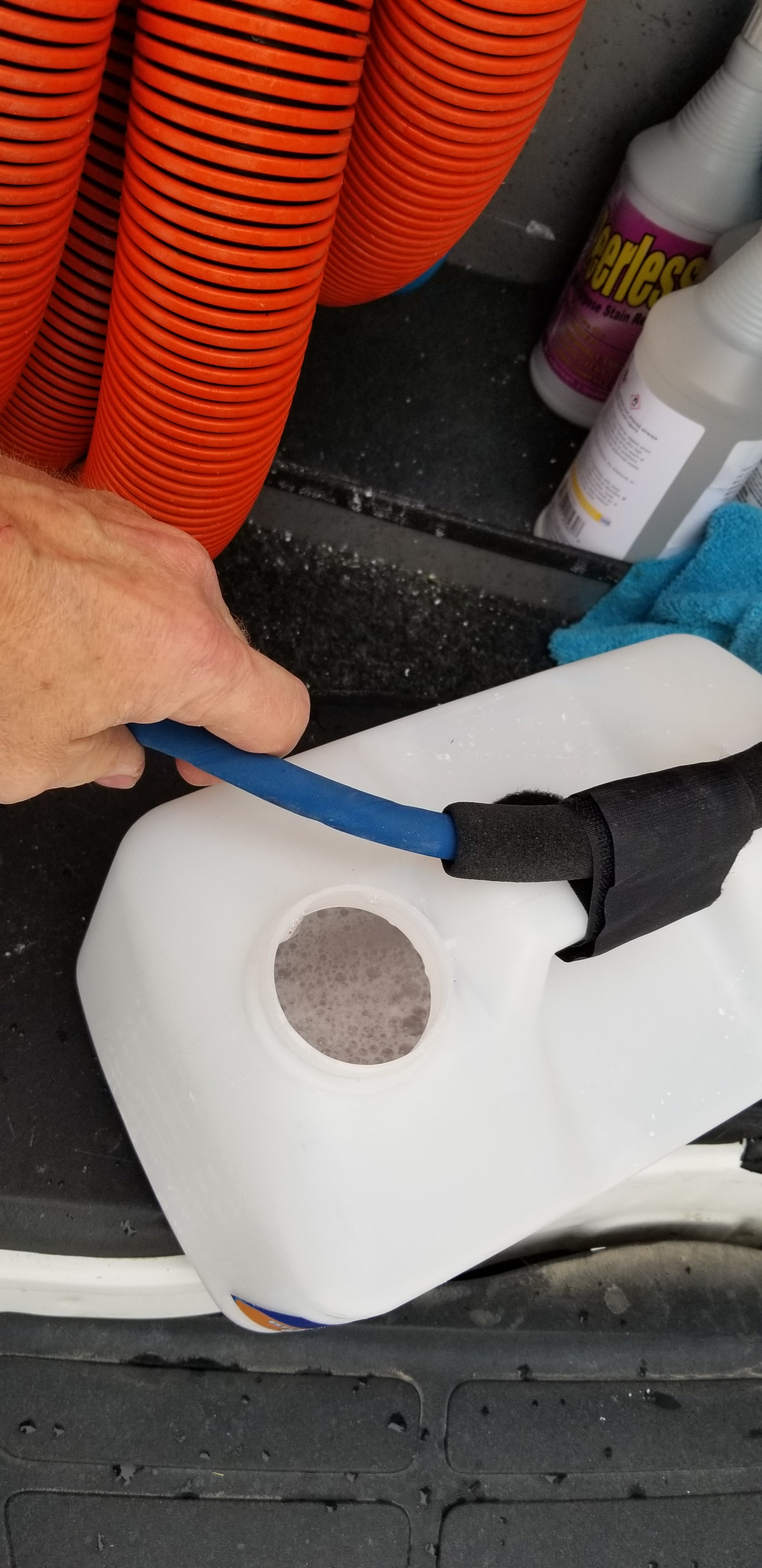 All you need is a bottle of vinegar in the truck. At the end of the day, just put the siphon hose in the vinegar and blow a little through it.
