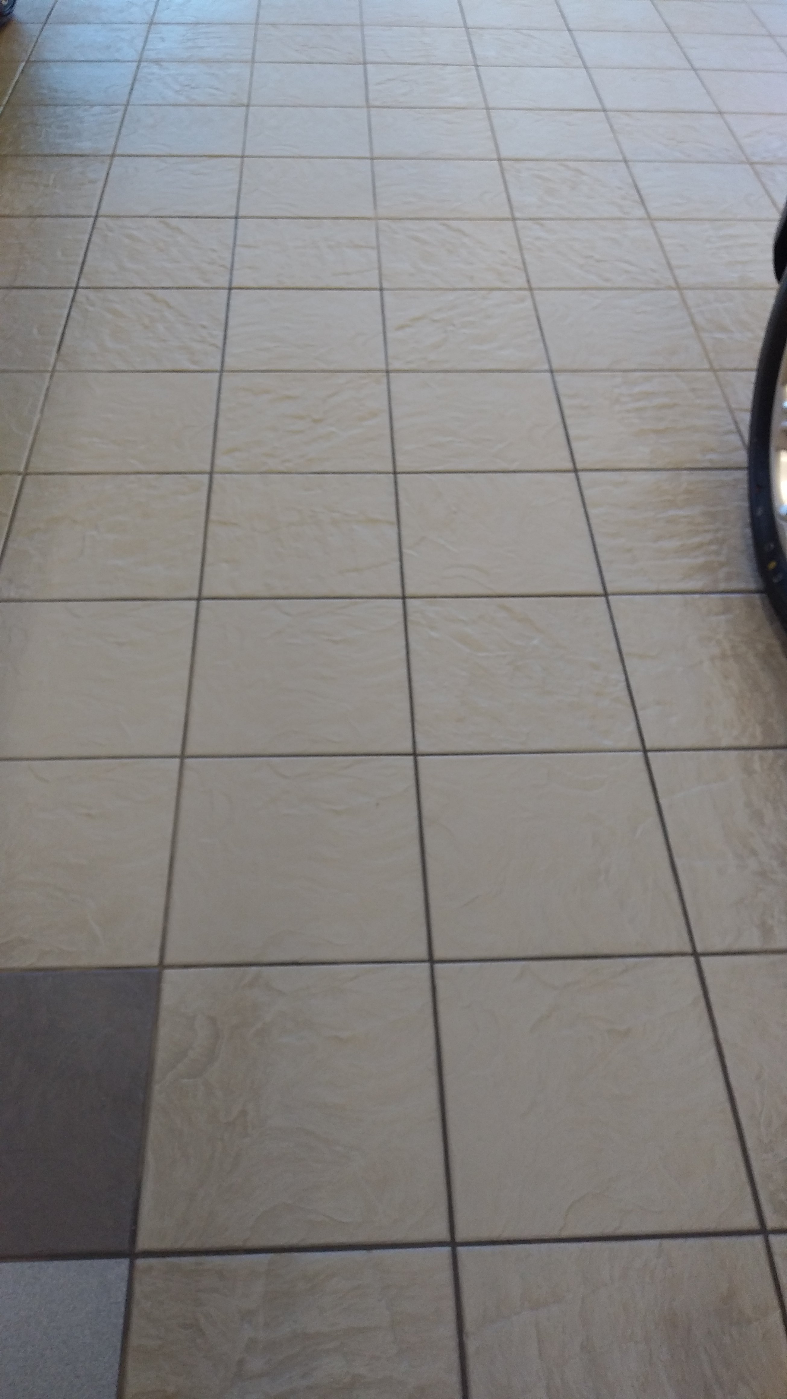 They ran a scrubber over the whole floor the one they use in the mechanics area and it looked like Crap.