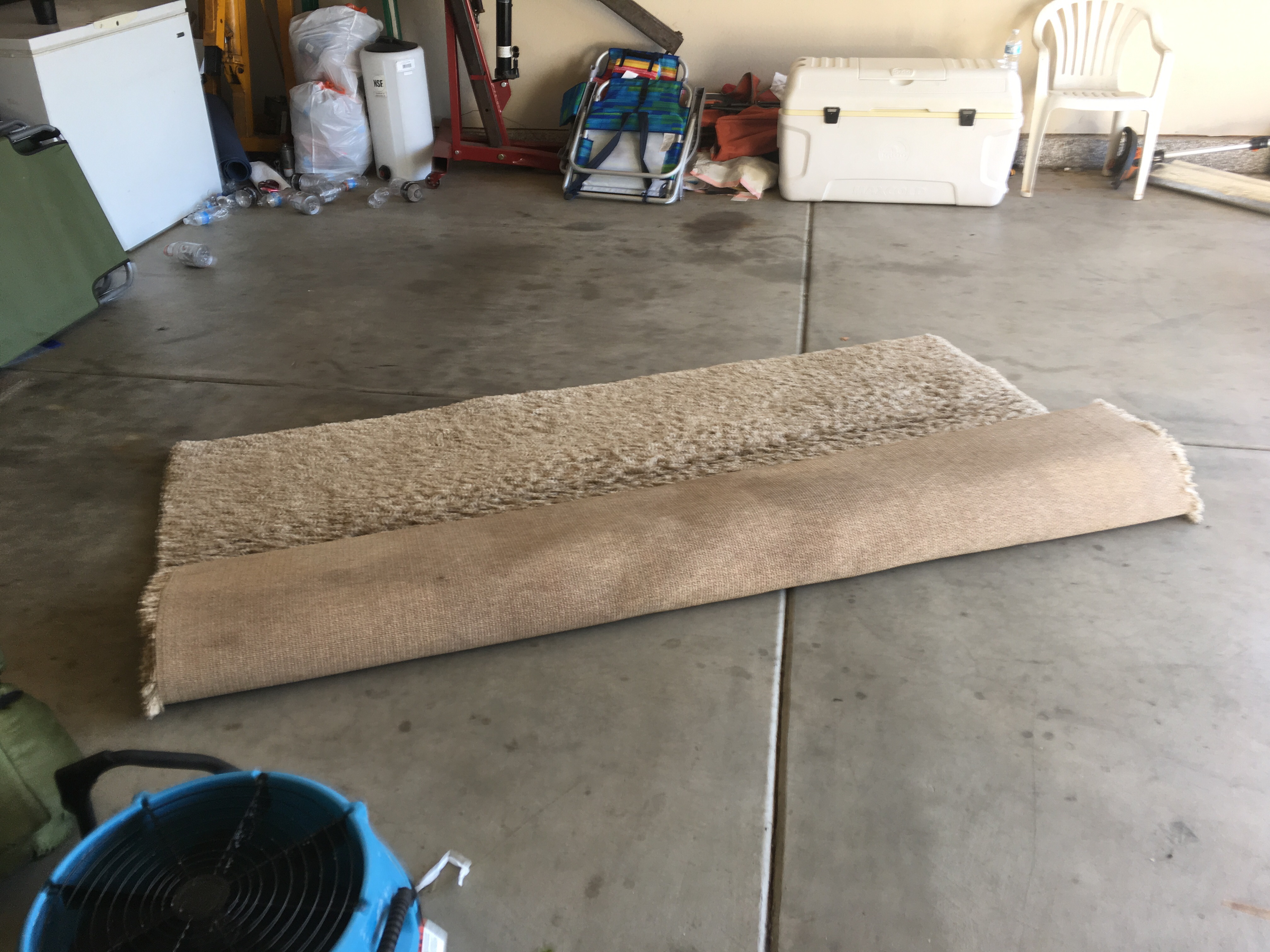 I rolled and placed it in two contractor bags, then into a trash can. I also stuffed in that rubber bumpy mat that acts as nonskid. Dumped half a gallon of P-Lime Zyme, filled the bag with enough water to saturate and cover the rug and left out on the driveway until tomorrow when I’ve had my coffee.