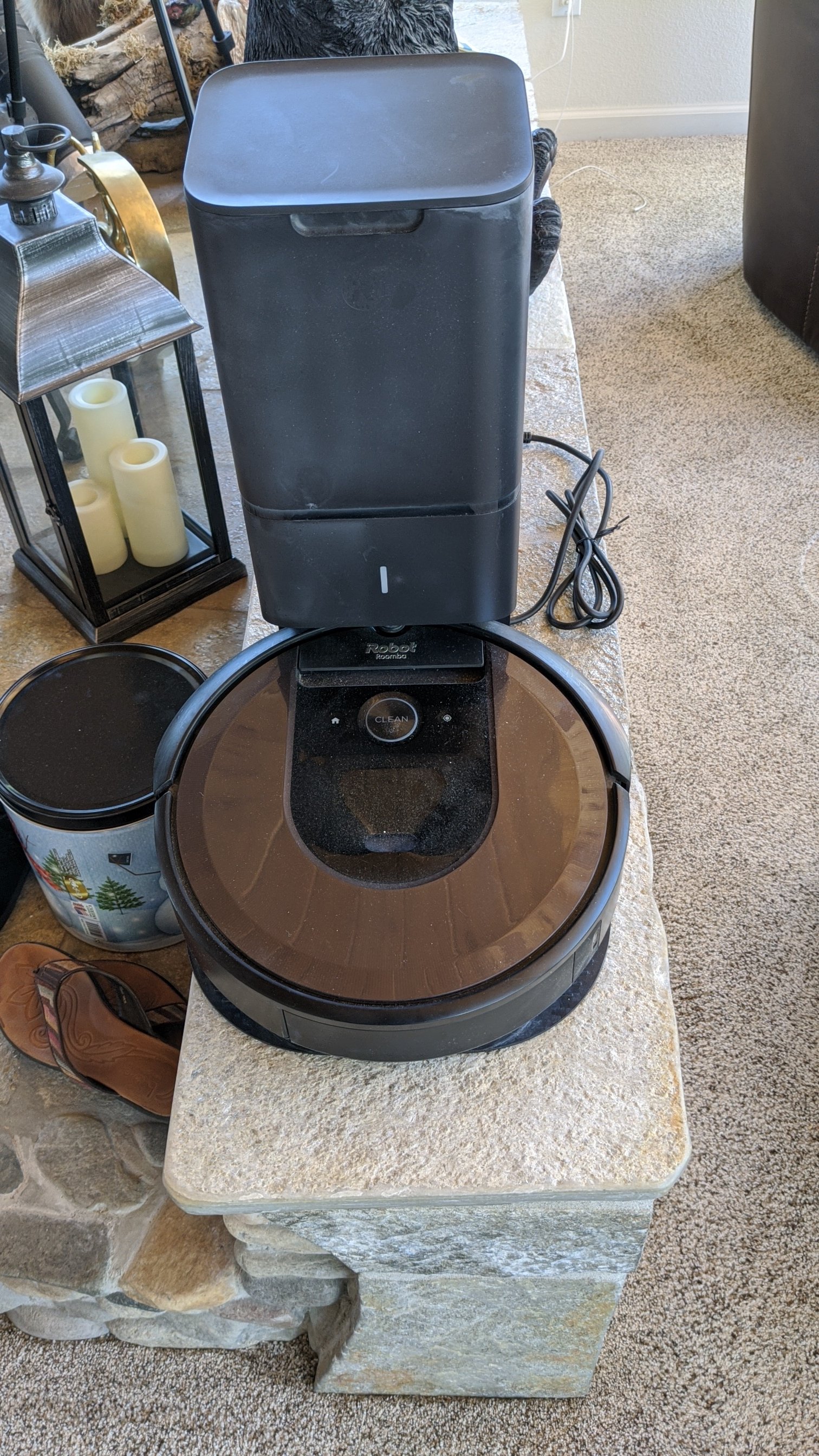 Robot vacuum work a dumping dock .
