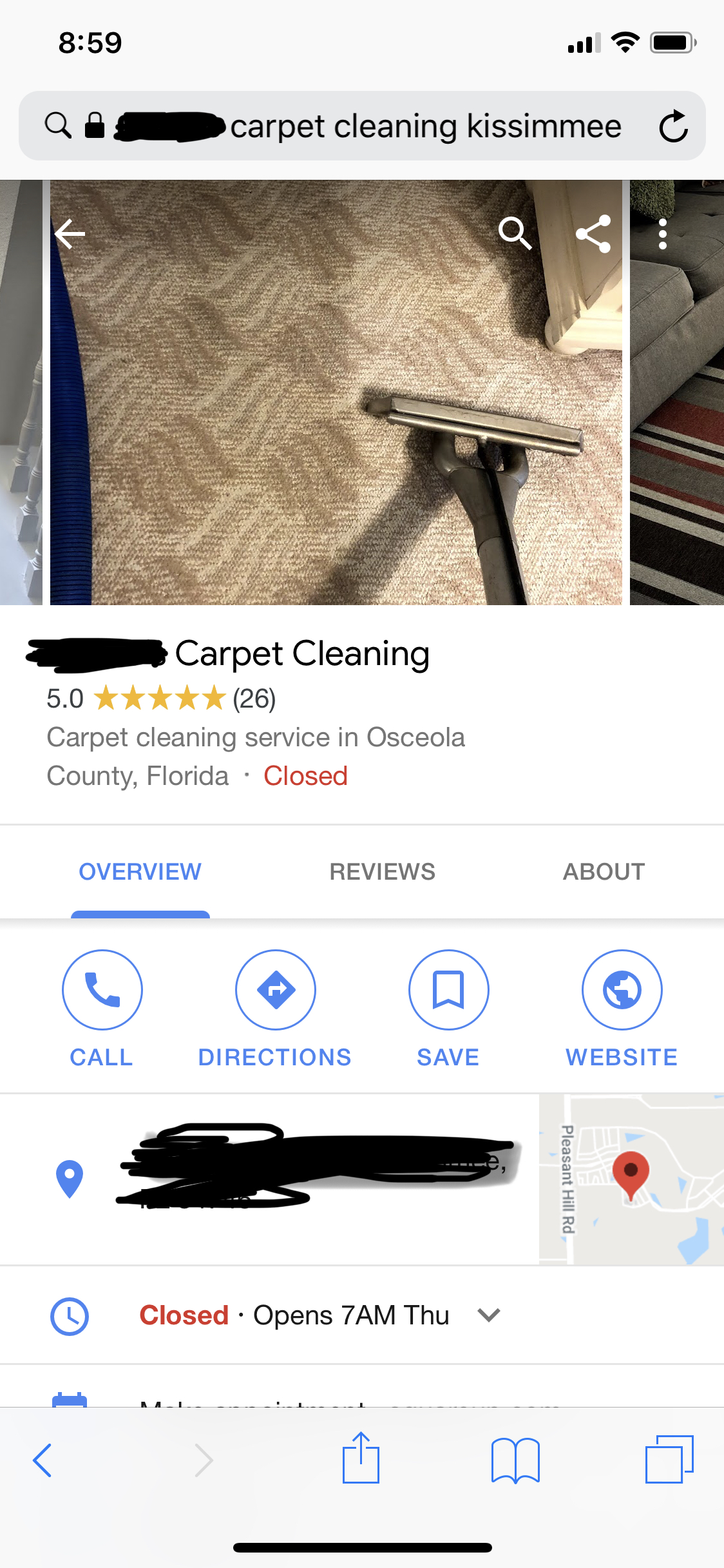 So my father received a call from another Florida Steemer franchise owner today just shooting the crap. They talked pretty regularly. Well apparently his shop was broken into last night and a van was stolen. He has GPS on the vehicle and when he called it in to the police they followed the GPS to where the van was at a shop with the cleaning unit being pulled and installed into a white van with “........ carpet cleaning” decalled on the side. SOB was installing the damn unit in his own van. Cops caught his red handed. the guy is out of Kissimmee, Fl, has 26 - 5 ⭐️ Reviews and his first dang picture is him cleaning with a Steemer wand...
