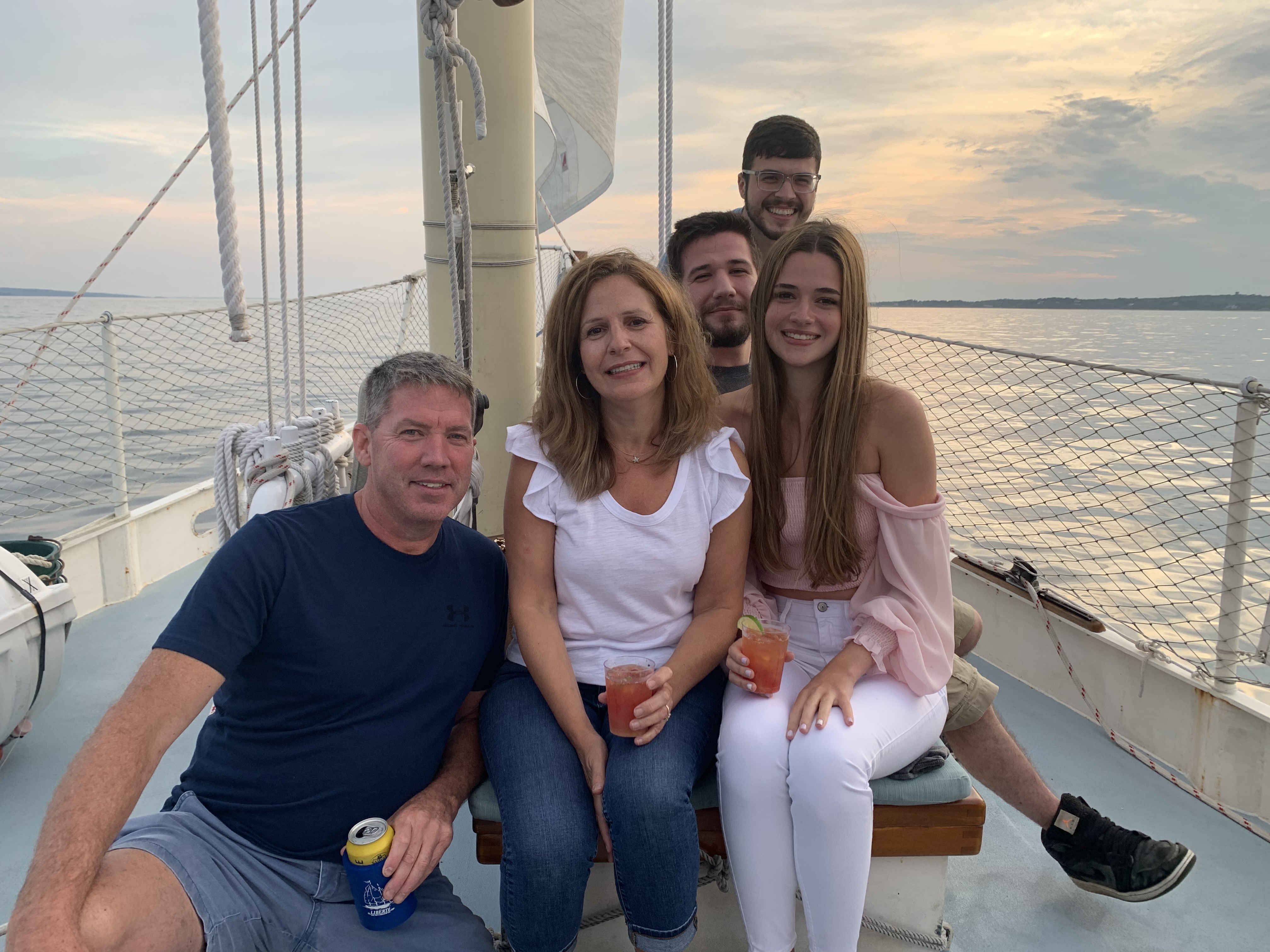 there is the philanderer in the center during her birthday sunset cruise down at our beach house 😂