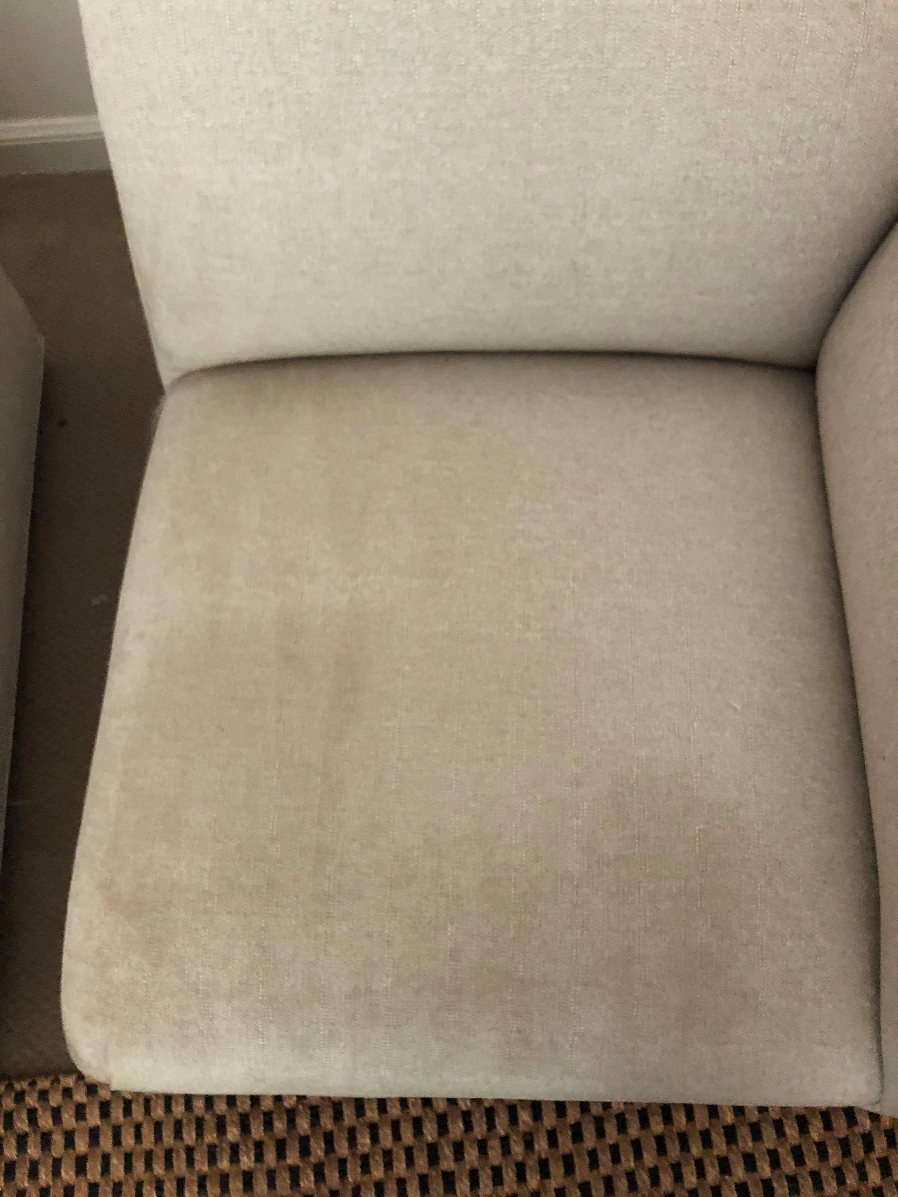 First a good cleaning with a good upholstery shampoo and green striped mitt and then I would have tried a little acid side rinse, toweled and fan dried.