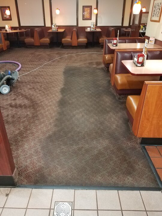 That was a larger Dennys that only got cleaned when corporate got down on them. It took about4½hours with a wait for them to close one side and open the other they were open 24hrs. Its probability the worst ive done. The last person that did it left so much soap that i went thru a whole small bucket of defoamer